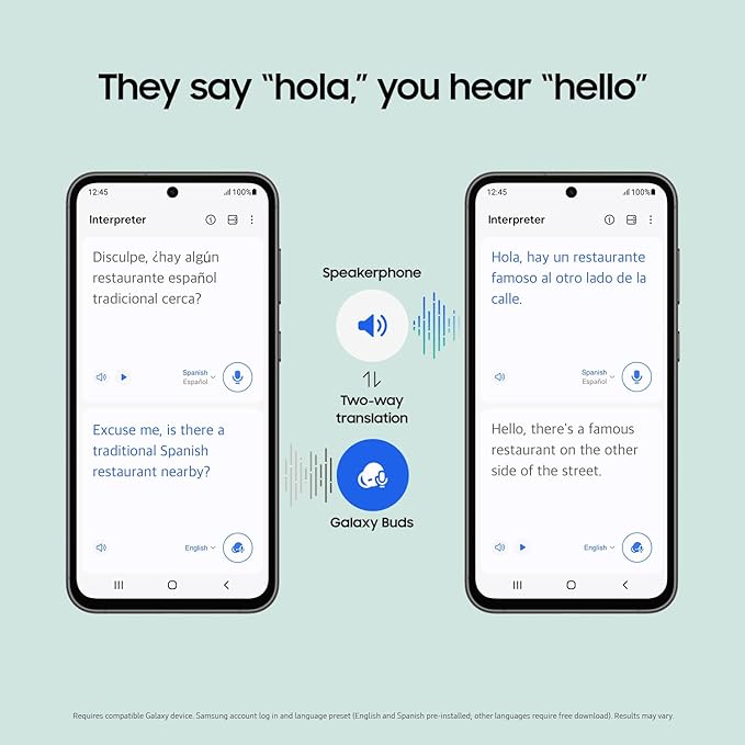 - THEY SAY “HOLA,” YOU HEAR “HELLO”: Now you can communicate freely with someone in another language; Use the Interpreter feature on your Galaxy phone to hear real-time translations through your Galaxy Buds during face-to-face conversations¹