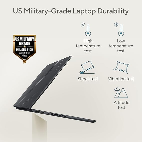 - Military-grade durability - Meeting US MIL-STD 810H military standards*, the Zenbook DUO ensures unmatched reliability in harsh conditions. Rigorous testing enhances longevity, guaranteeing that your laptop is ready for work, travel, or relaxation both today and in the future.